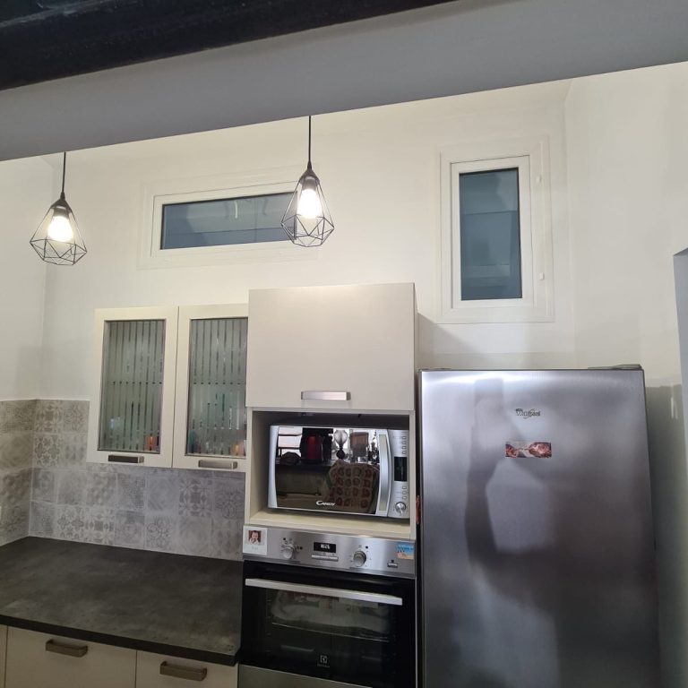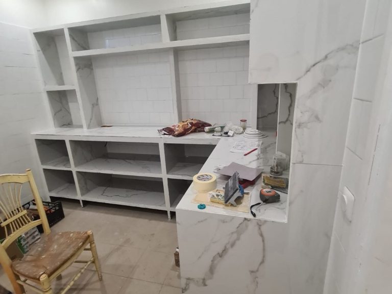 Découpage dans le mur , pour installer les 2 puits de lumière entre salle de bain et la cuisine